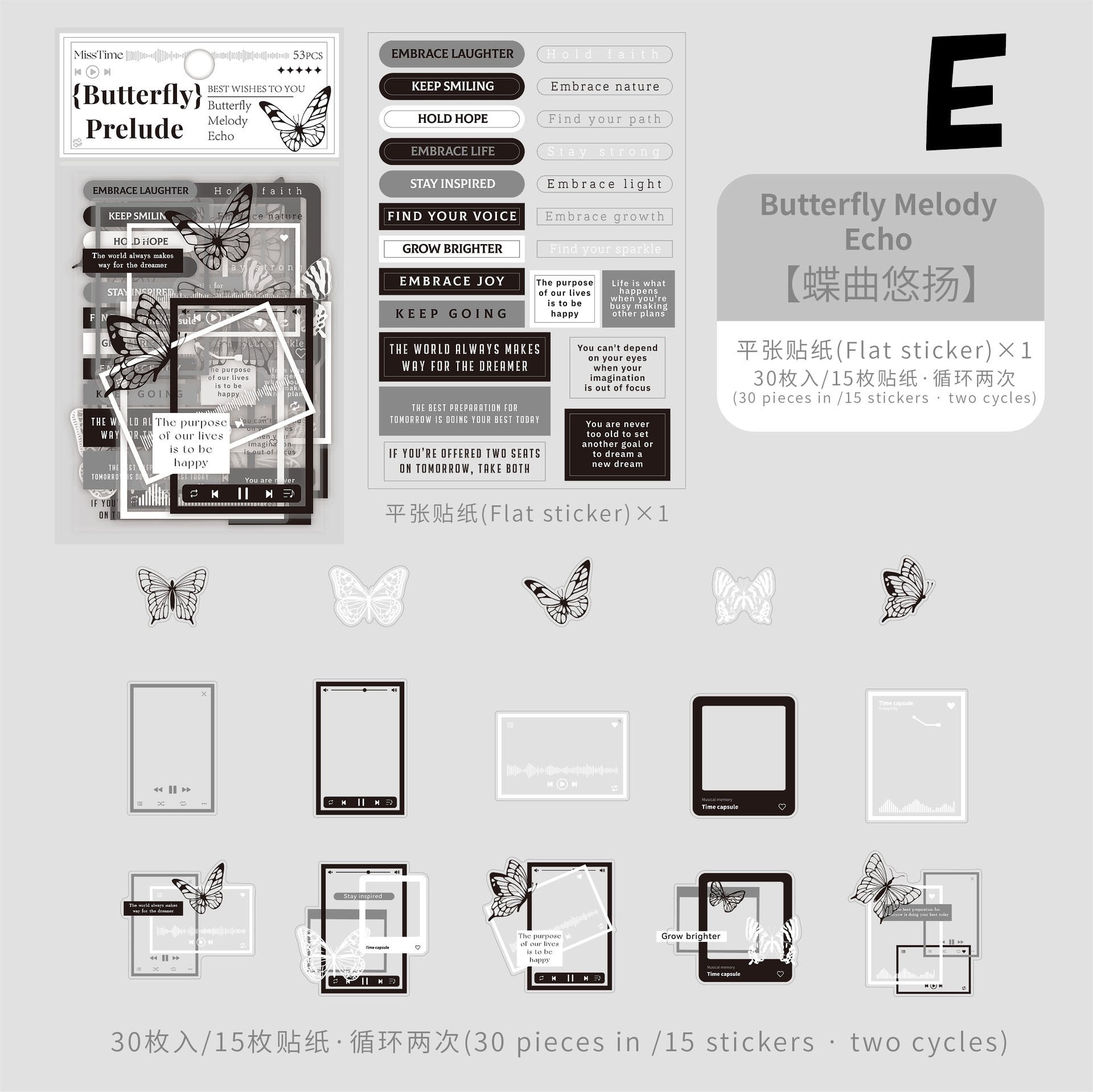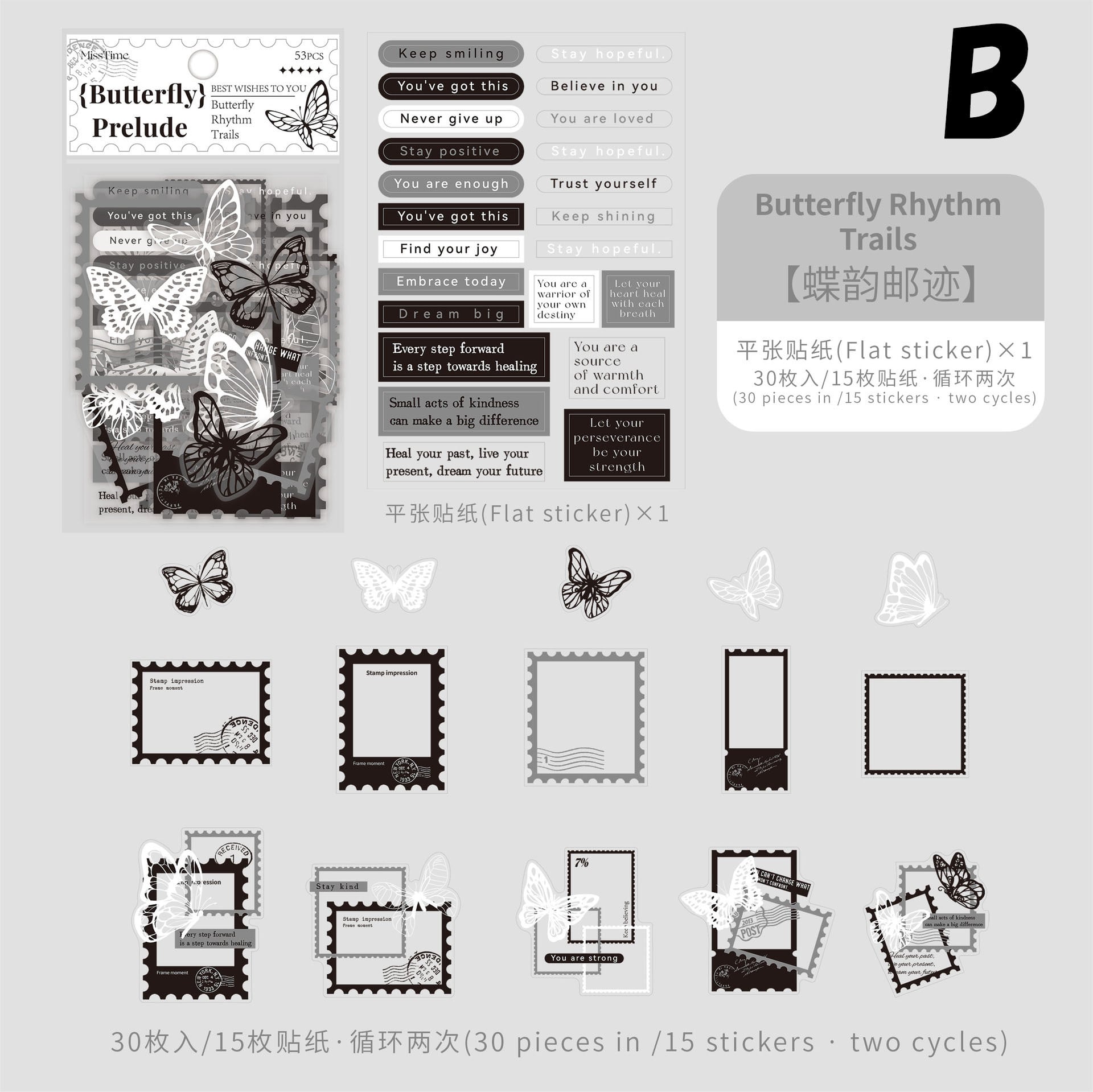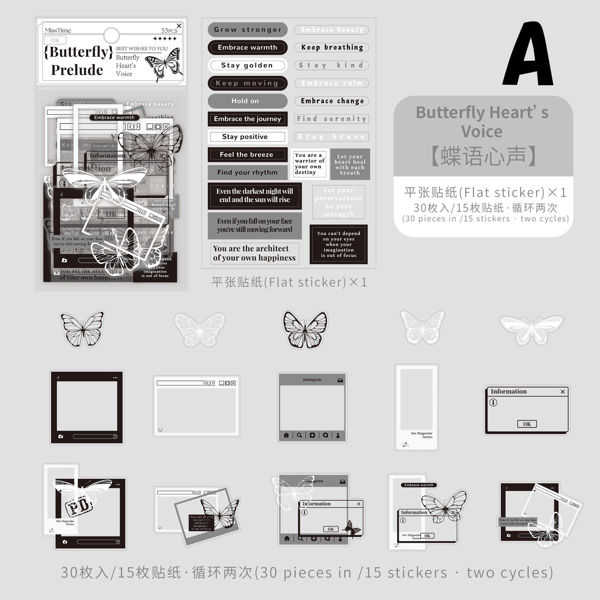 モノクロ蝶とフレームのシール