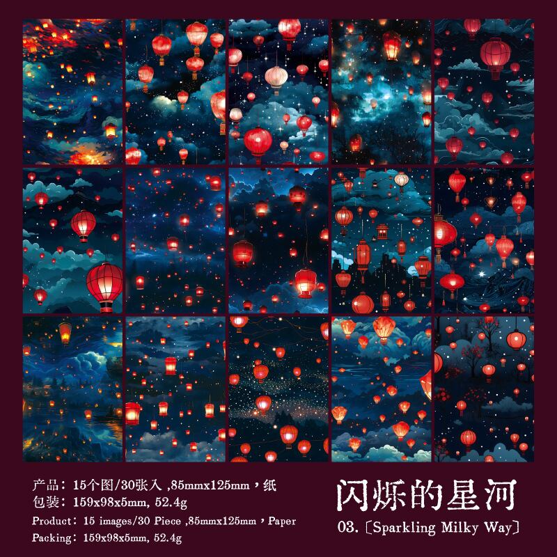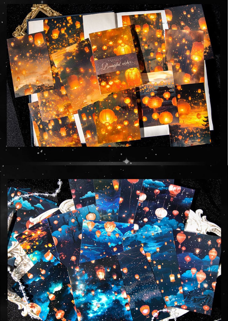幻想的なランタンが夜空に浮かぶ美しいペーパーです。