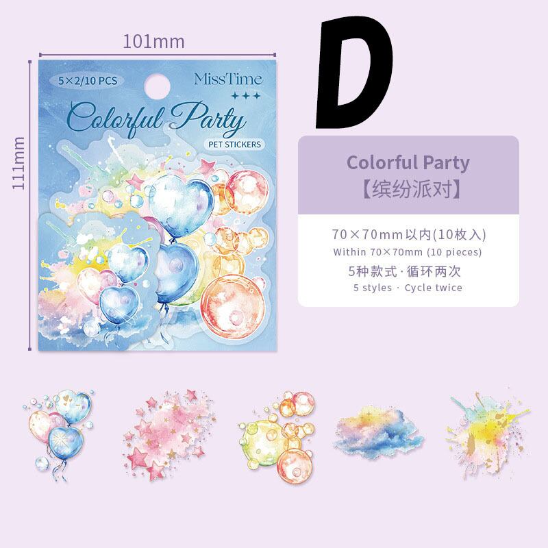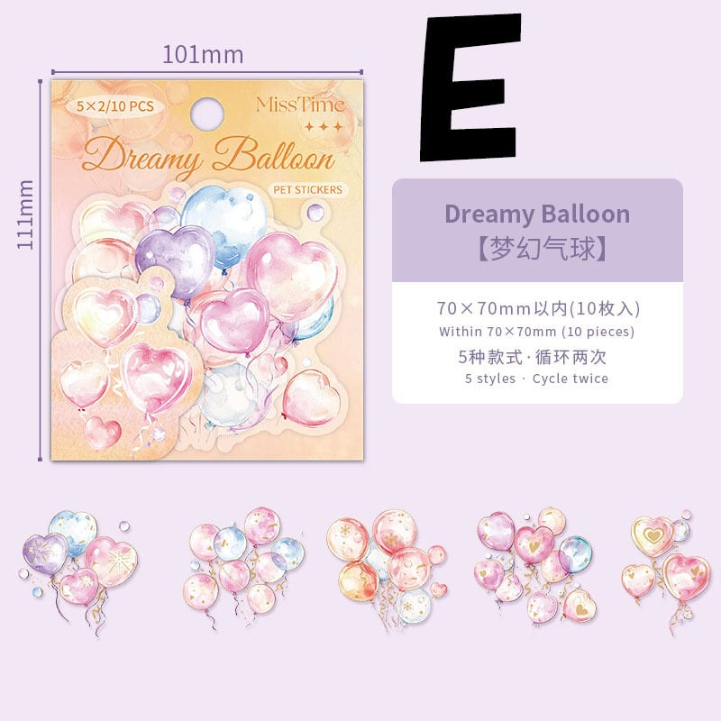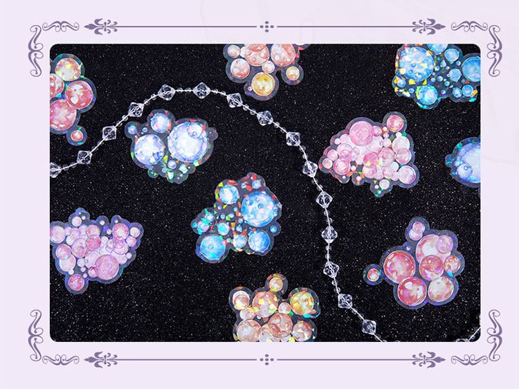 キラキラ輝く雲やシャボン玉の美しいシールです。