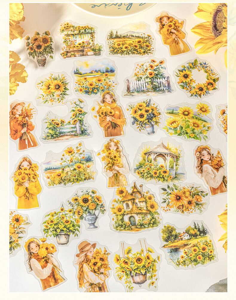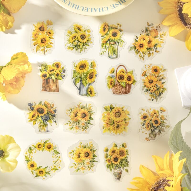 夏の日差しが感じられる、ヒマワリのきれいなイラストのシールです。
