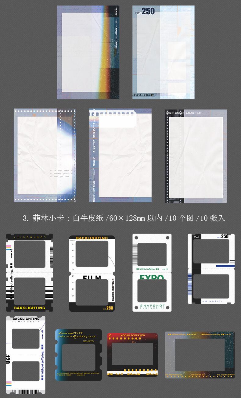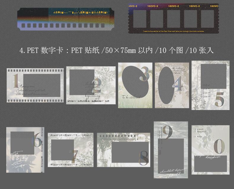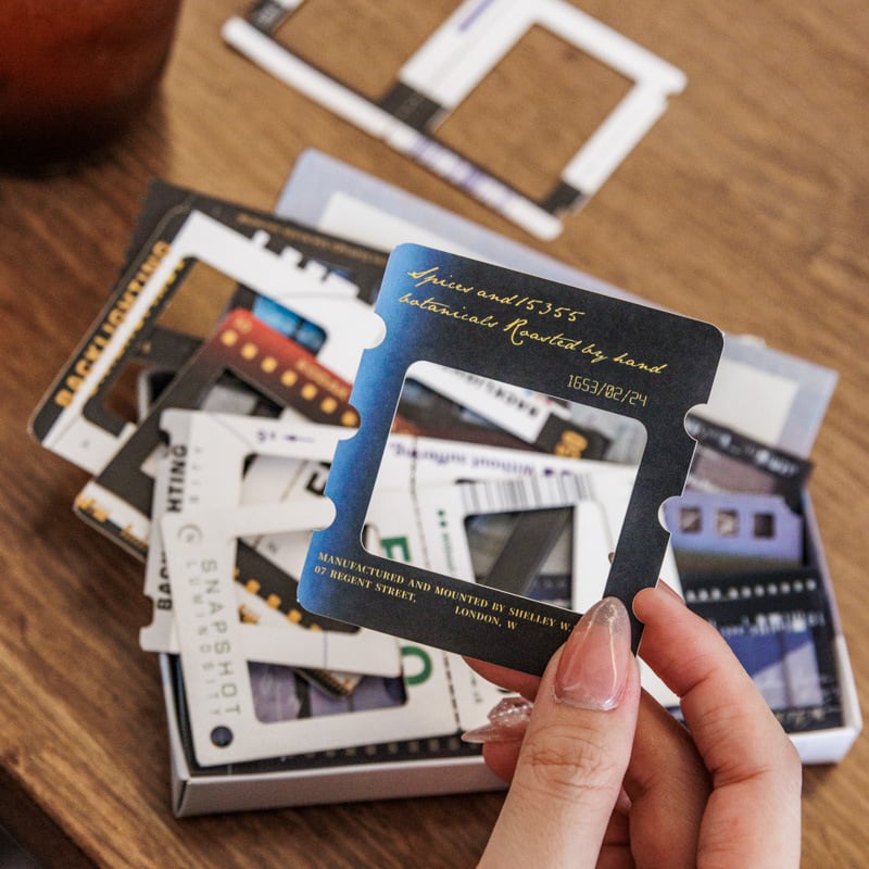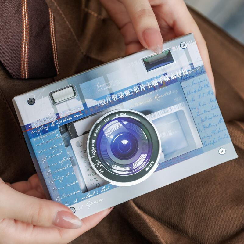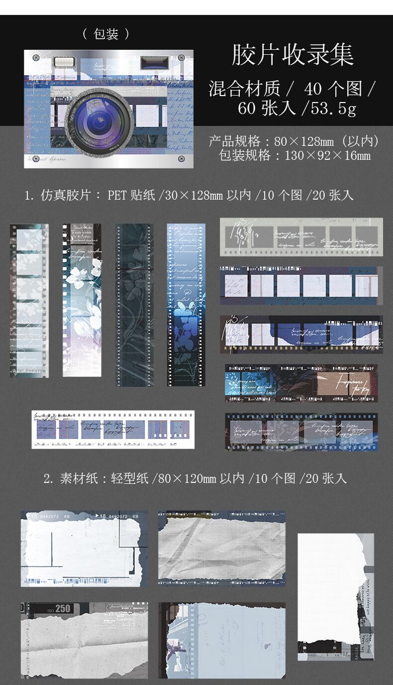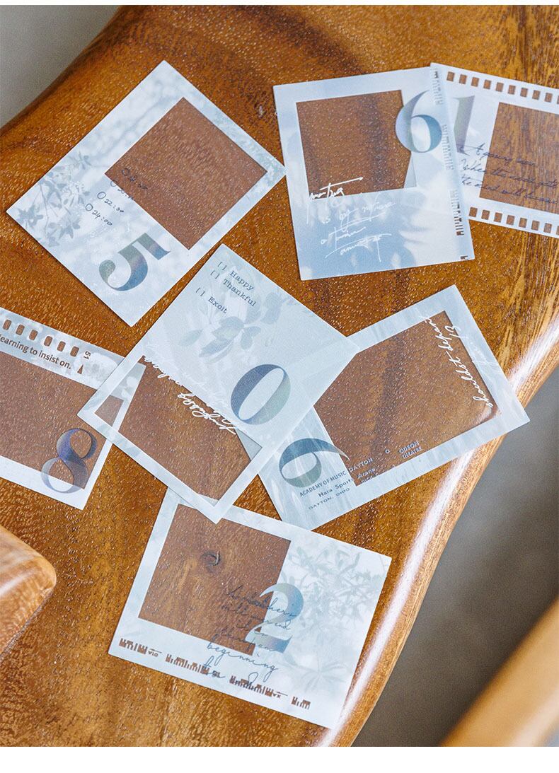 カメラのフィルムのようなレトロな雰囲気のペーパーとシールのセットです。