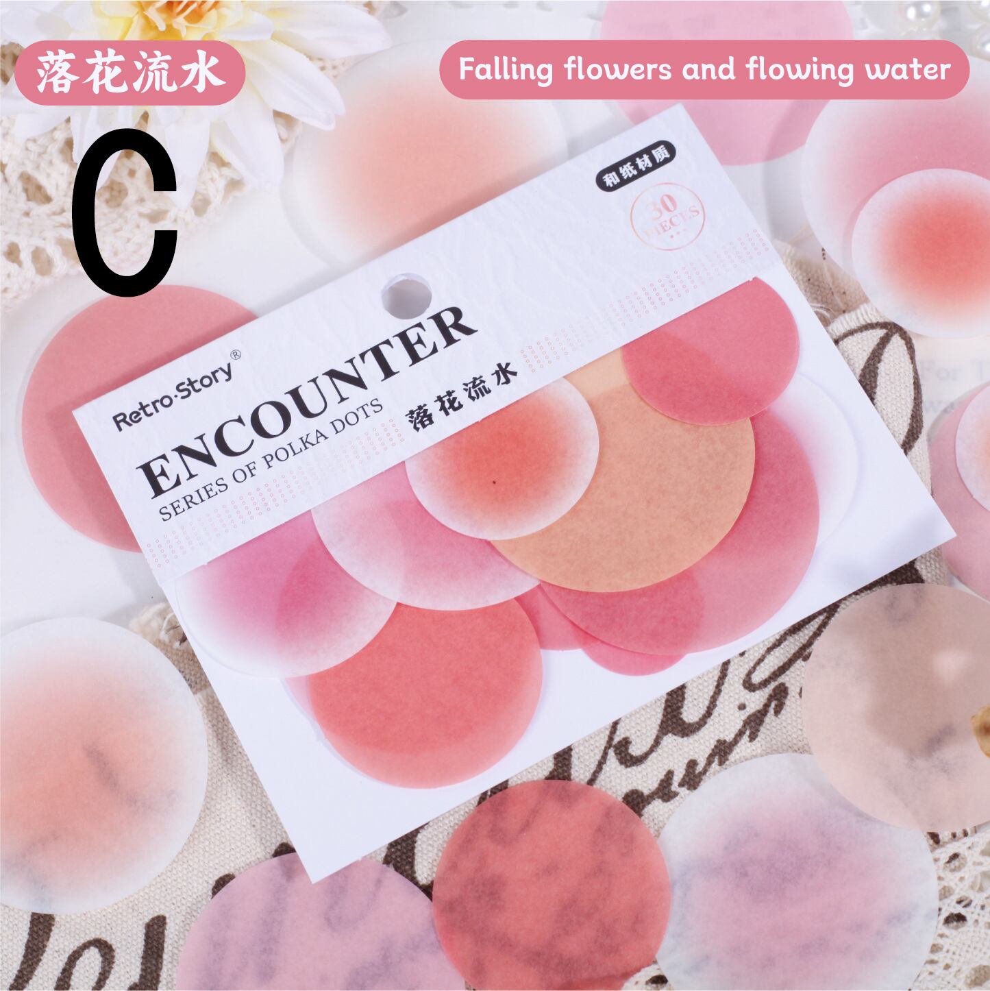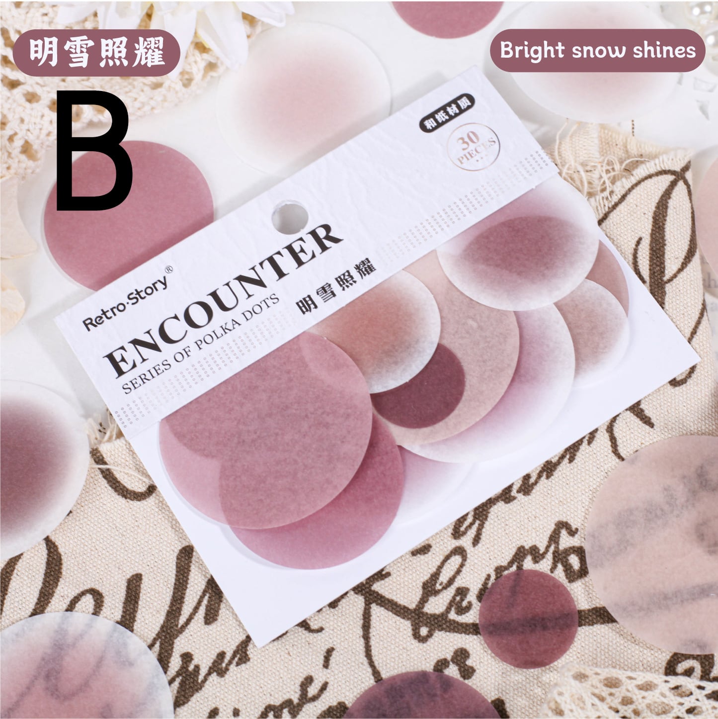 ふんわり柔らかい色の丸いシールです。