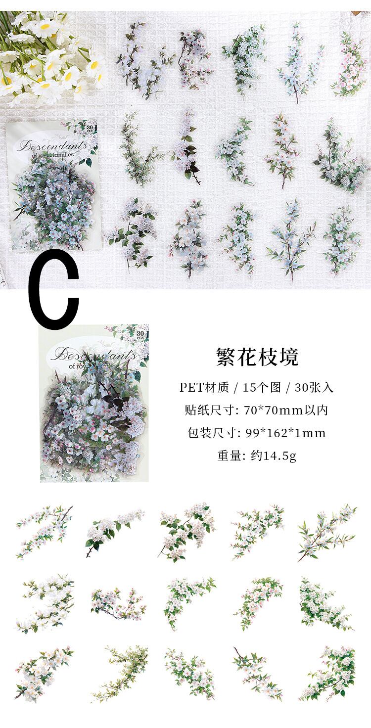 かわいいお花がついた植物のデザインのシールです。