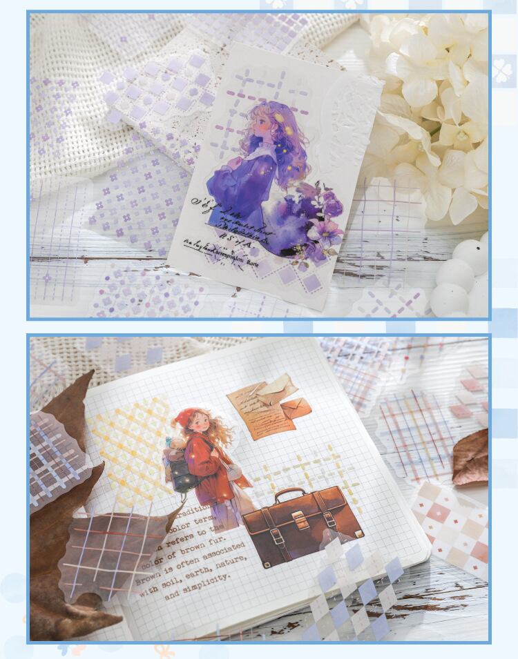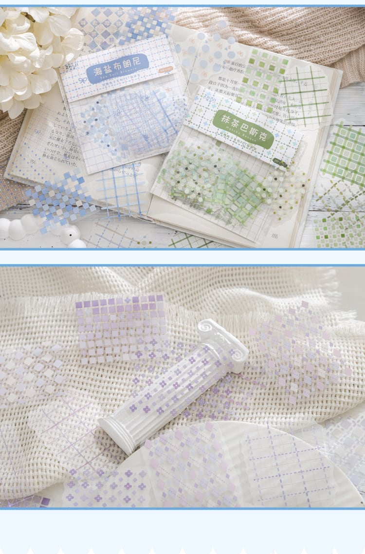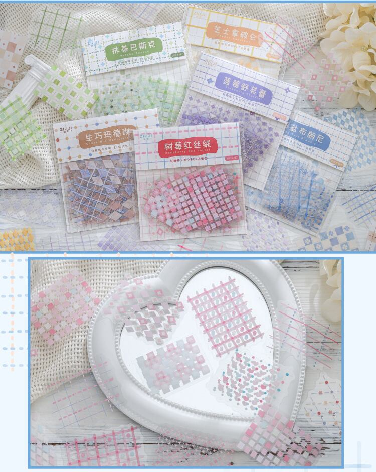 チェックなどかわいい色とデザインのシールです。