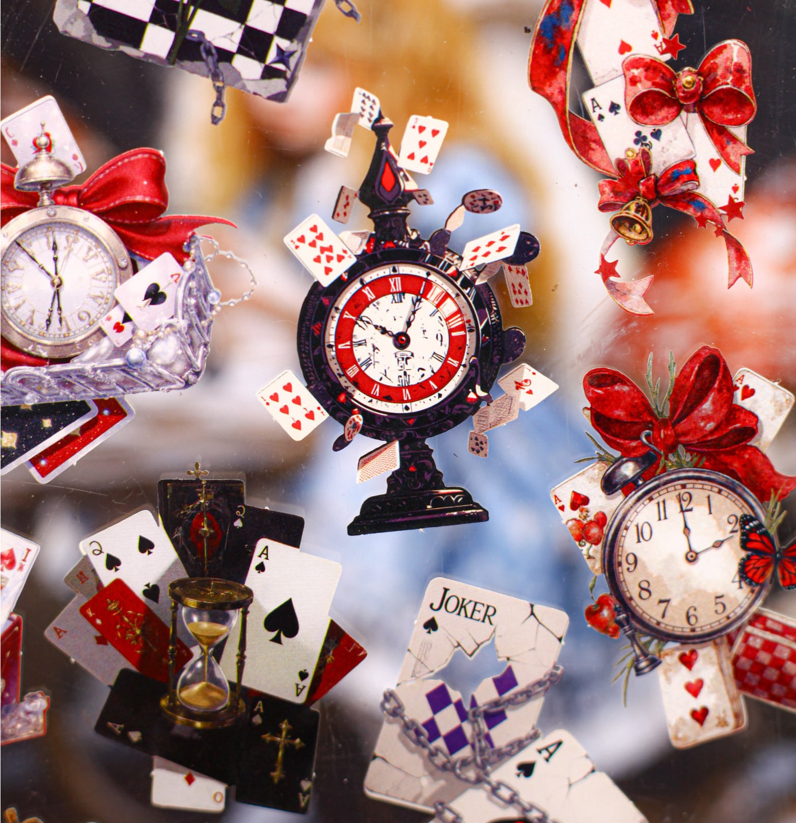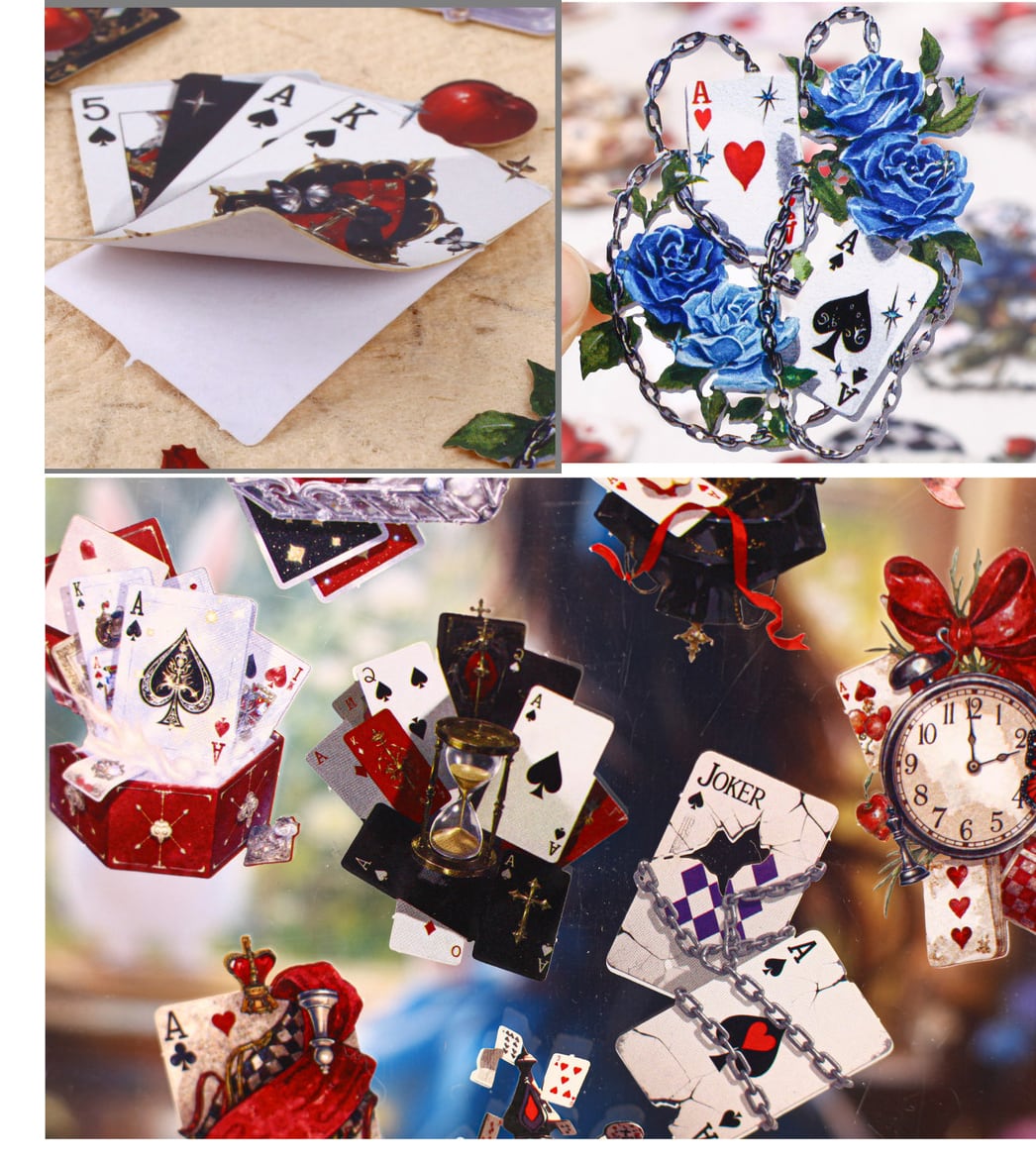 かわいいトランプがちりばめられたデザインのシールです。