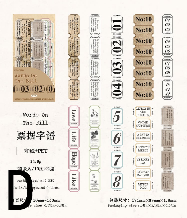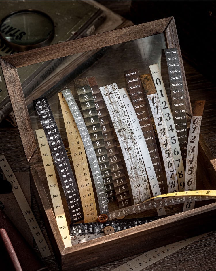 レトロな雰囲気のデザインの細長いシールです。