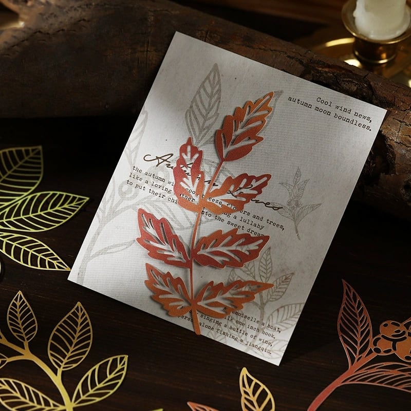 グラデーションカラーが綺麗な葉っぱの切り絵風ペーパーです。