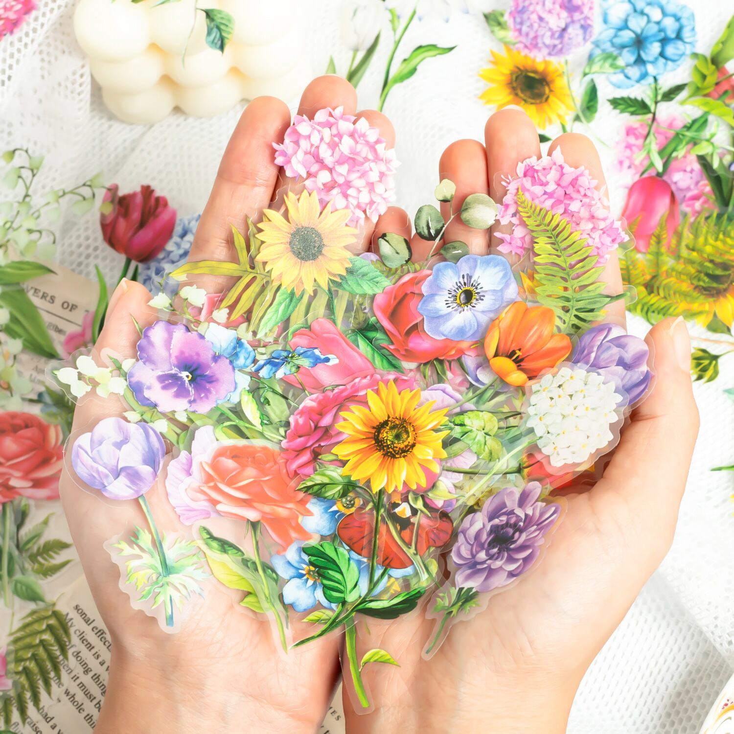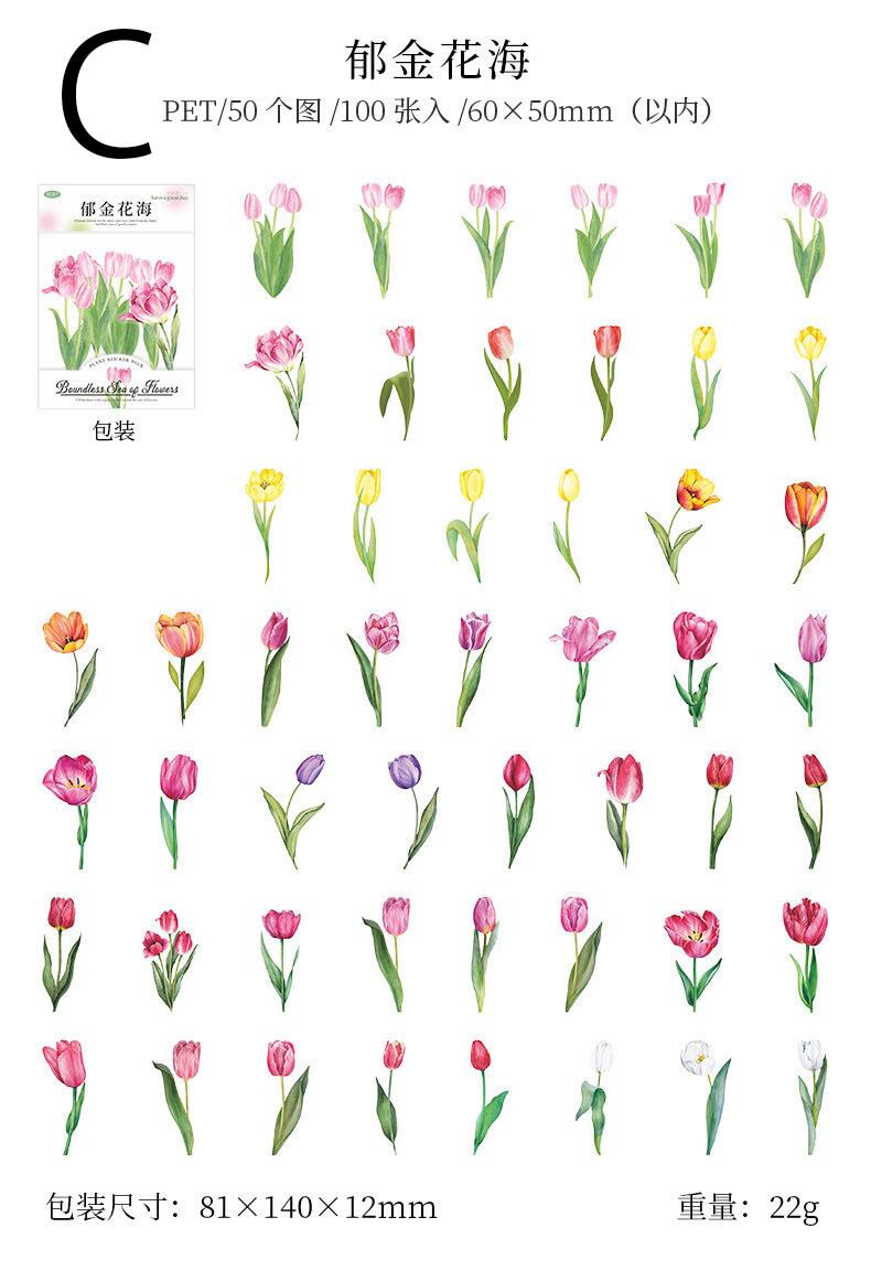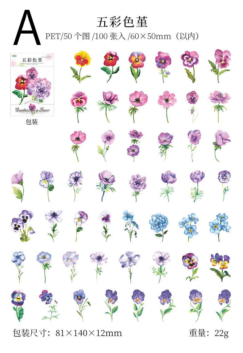 色合いがきれいなお花のシールがたっぷり100枚はいっています。