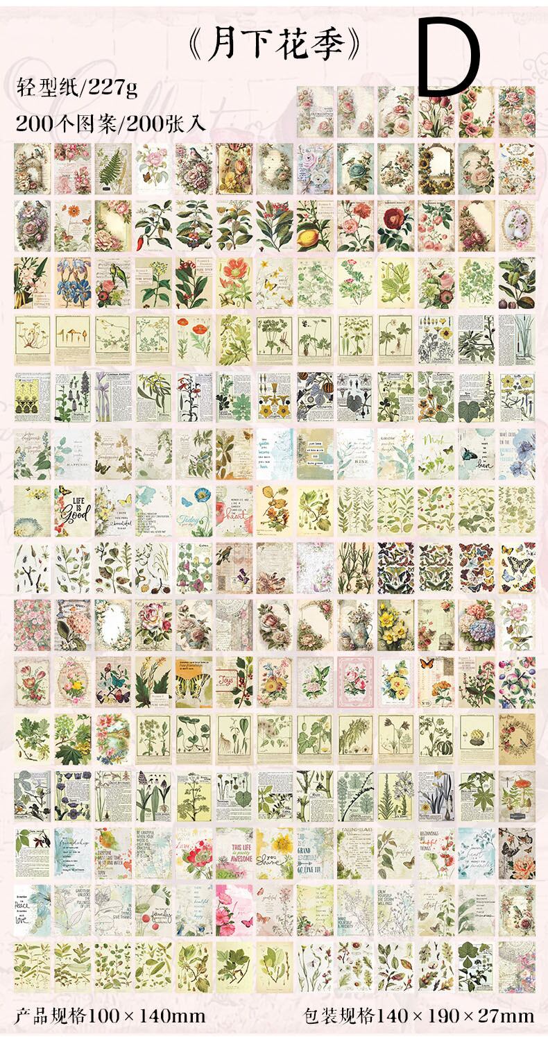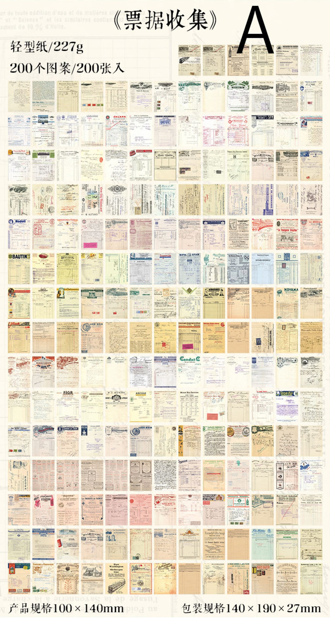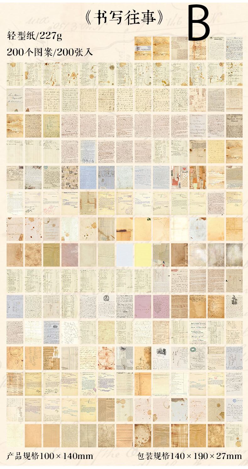 ヴィンテージ風のデザインペーパーがたっぷり200枚セットになっています。