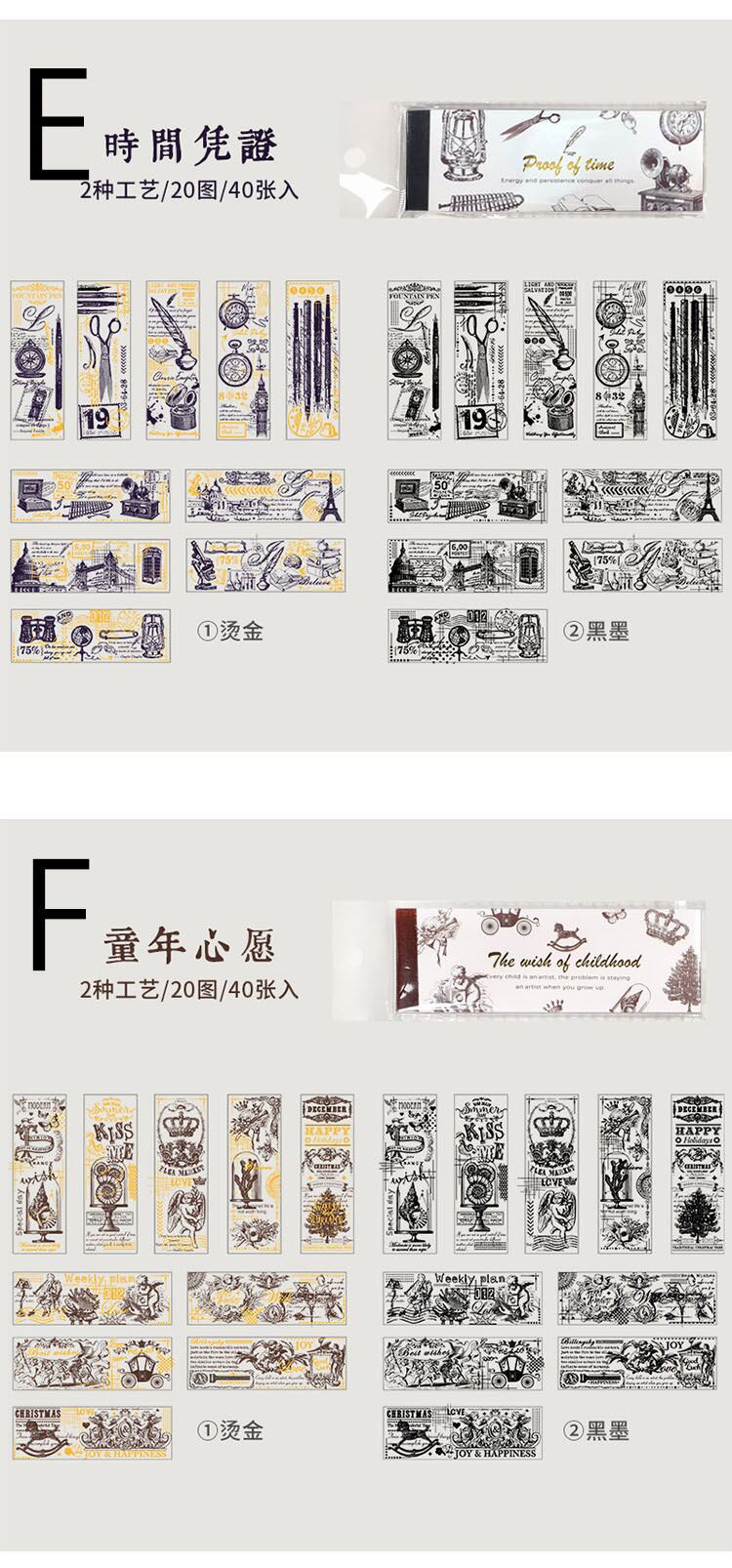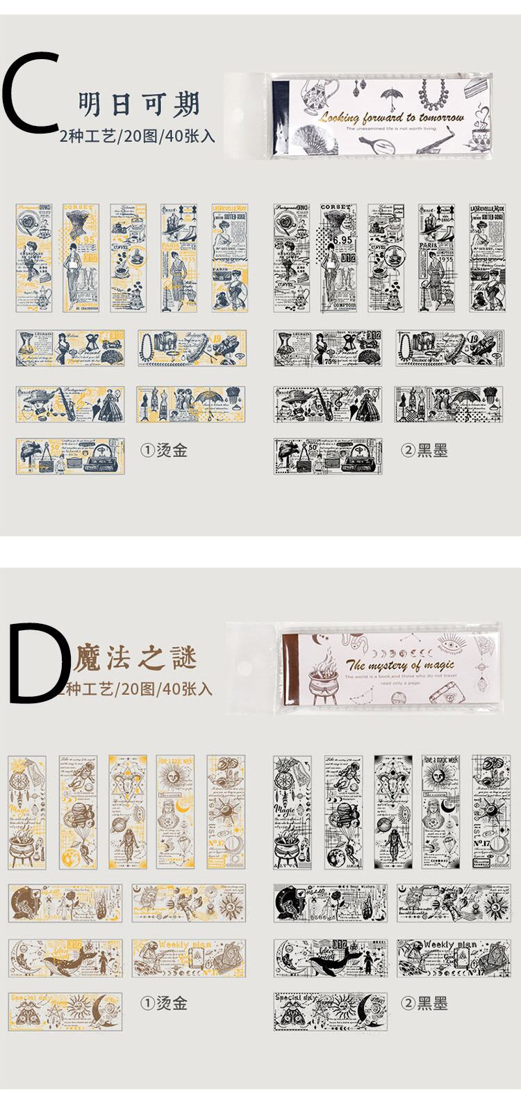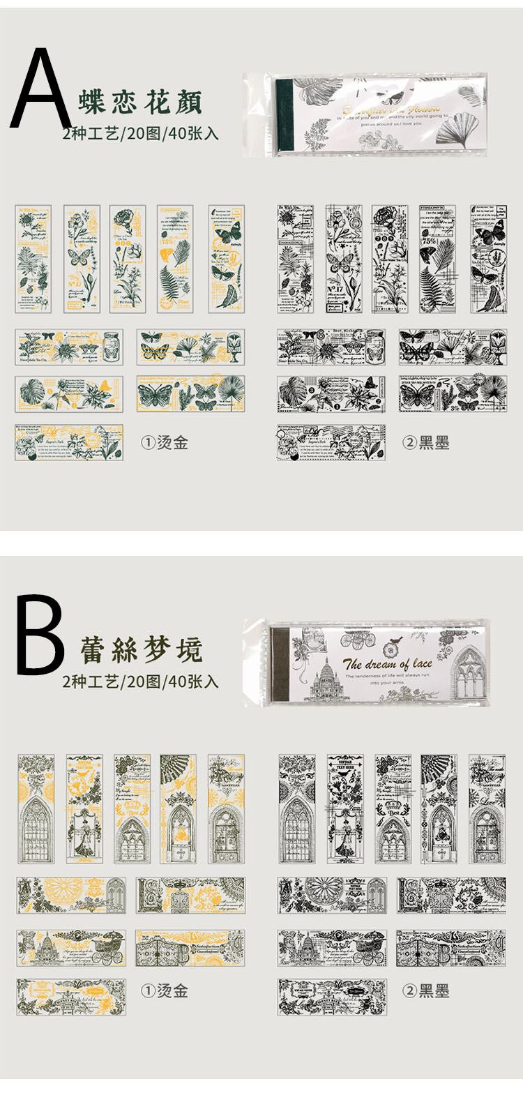 モノクロと金の装飾が素敵な、小物や植物などの長方形のシールです。