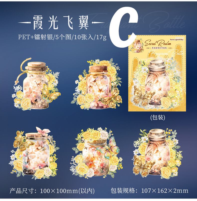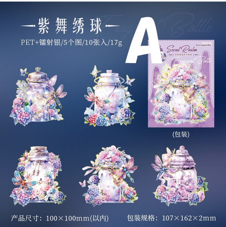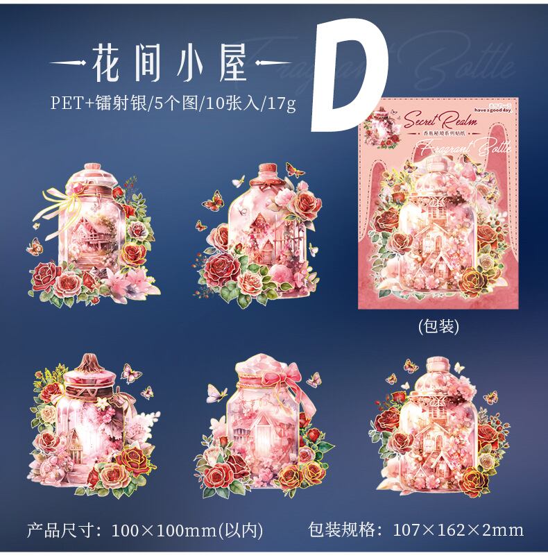 メルヘンな雰囲気の植物と瓶の大きめシールです。