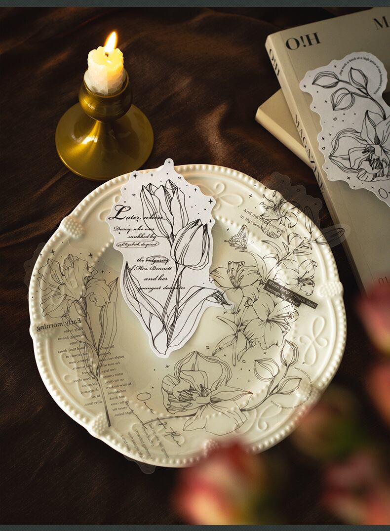 モノクロがシンプルながら美しい大きめのお花のシールです。