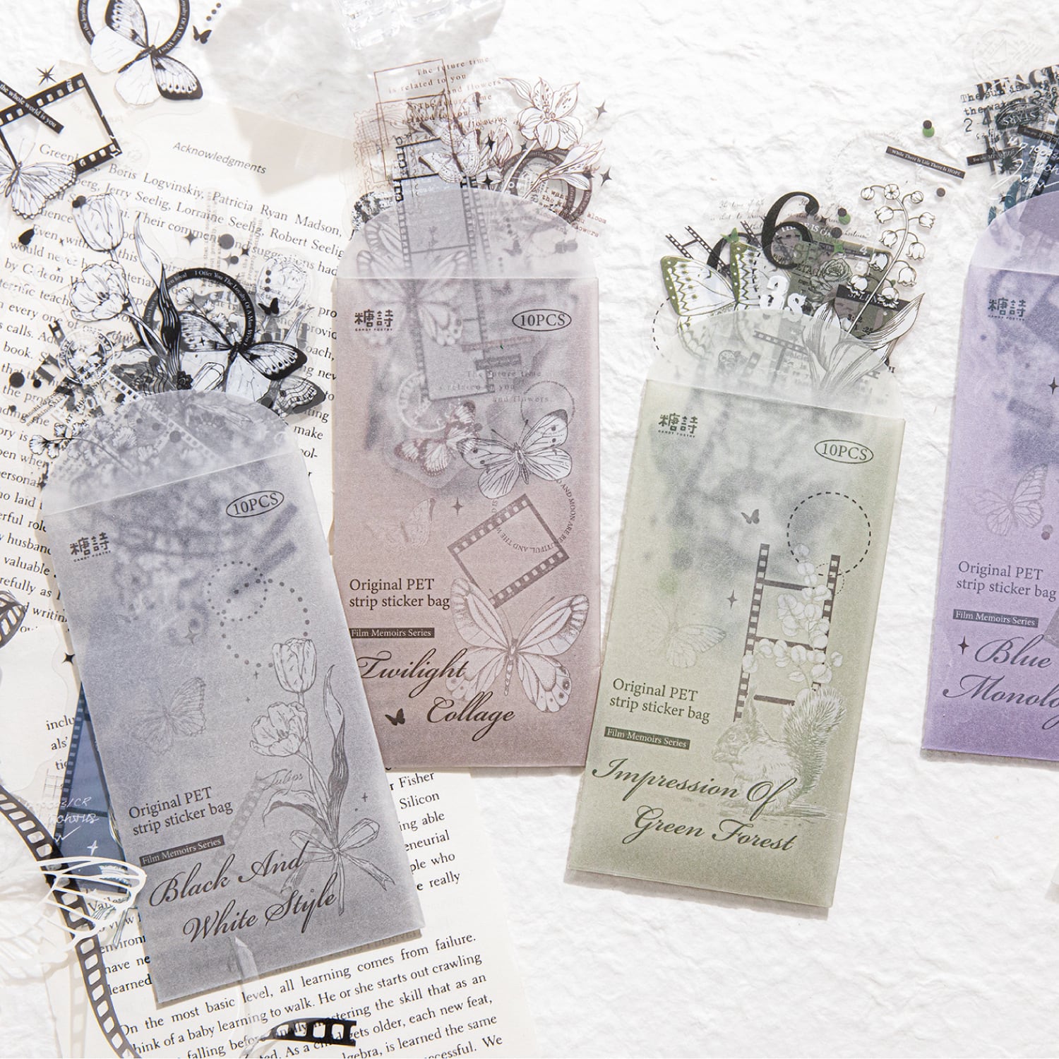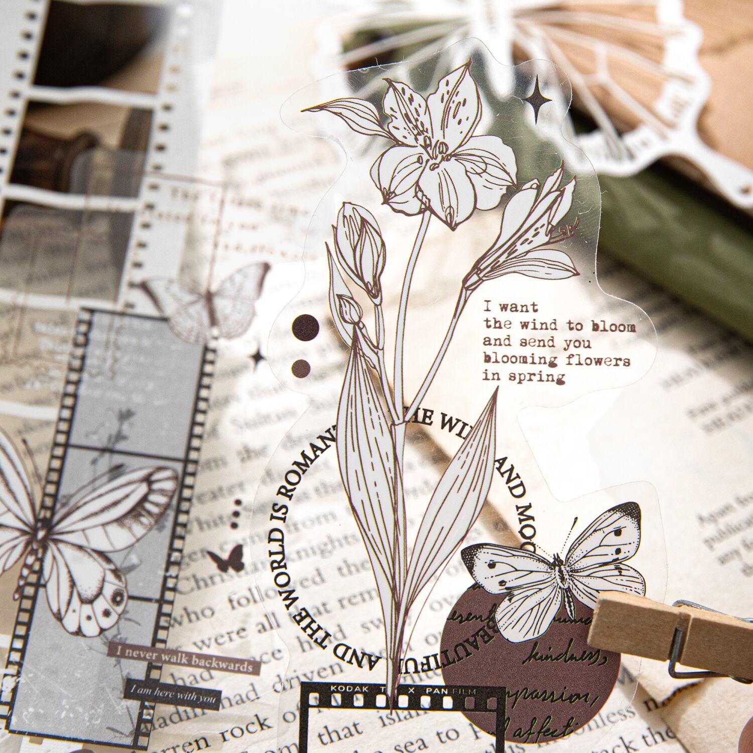 シンプルな色合いとフィルムと植物のデザインが素敵なシールです。