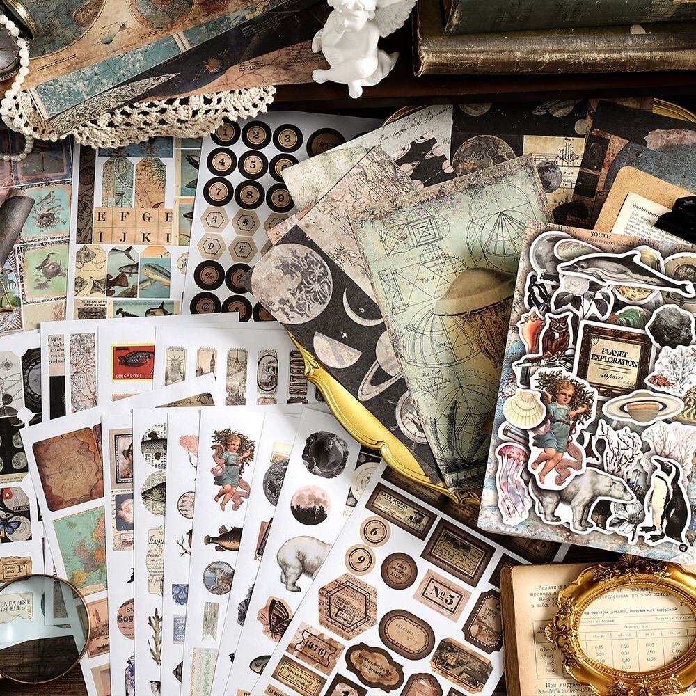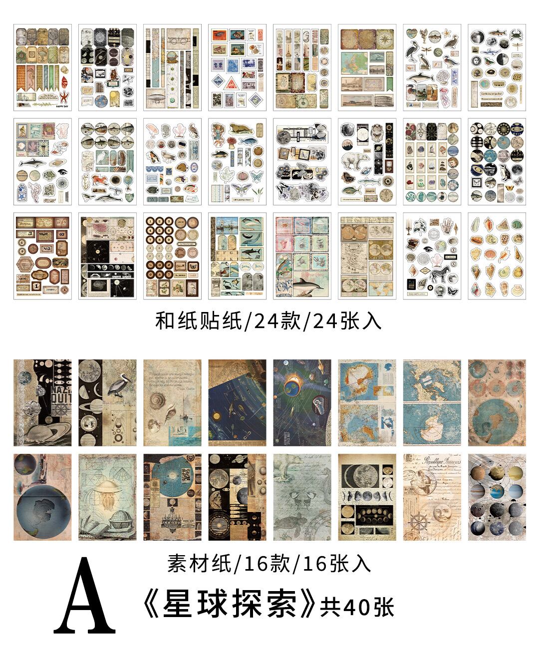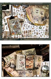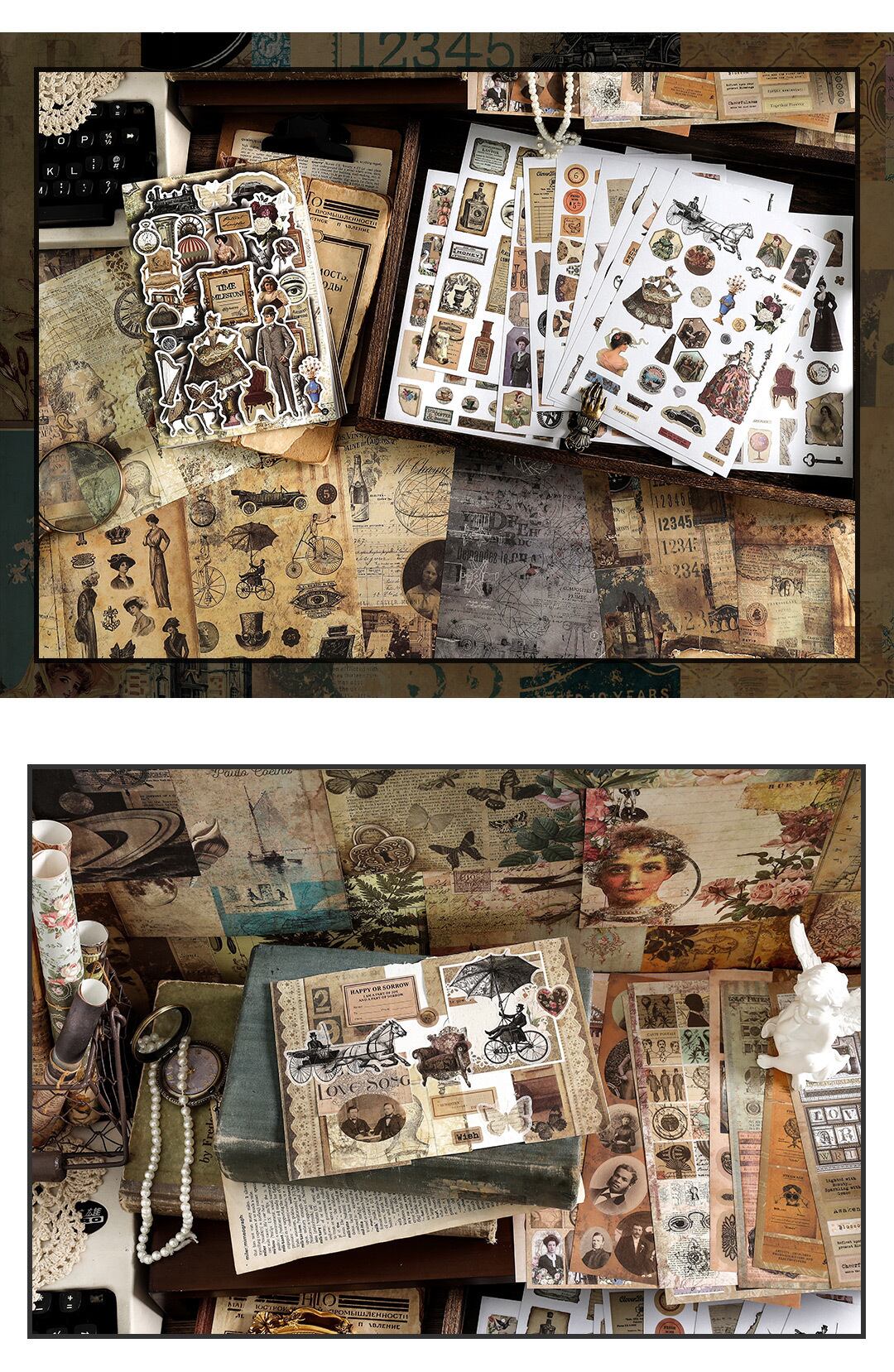 ヴィンテージな雰囲気のデザインのシールシートとペーパーのセットです。