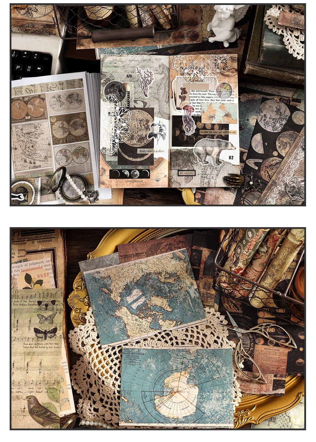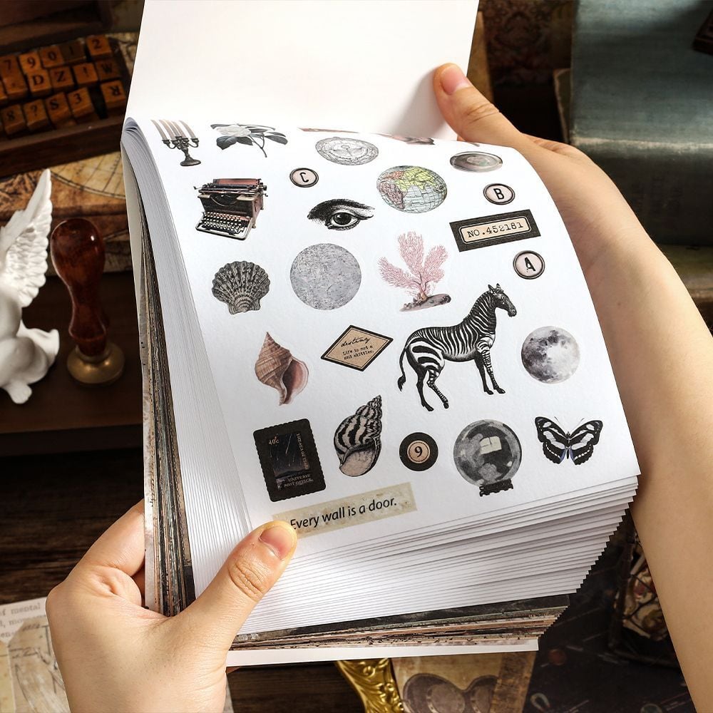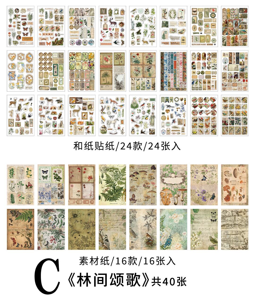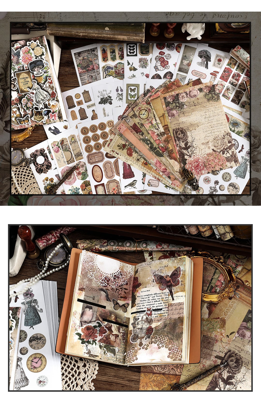 ヴィンテージな雰囲気のデザインのシールシートとペーパーのセットです。
