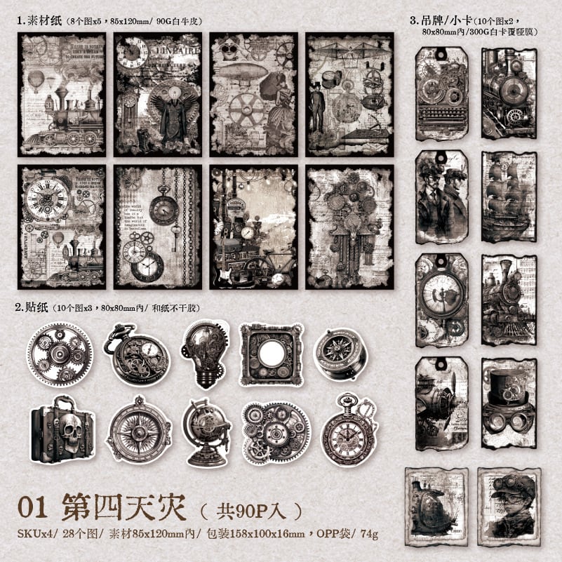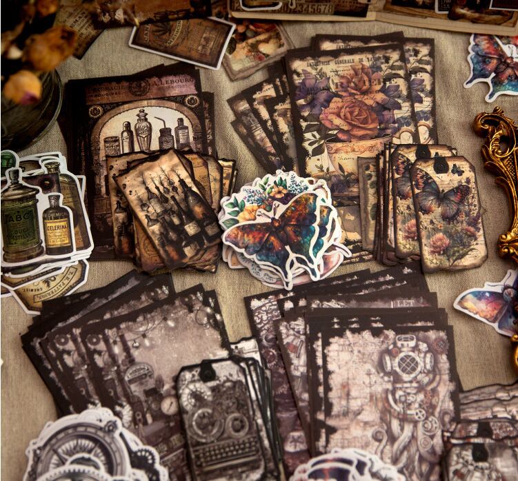 ダークな雰囲気の紙ものやシールなどがたっぷりセットになっています。