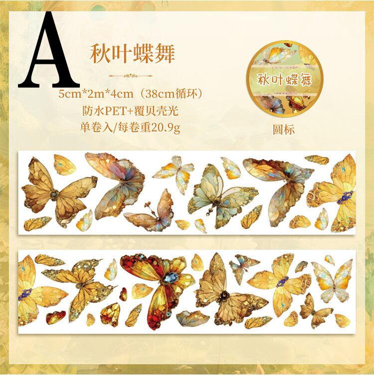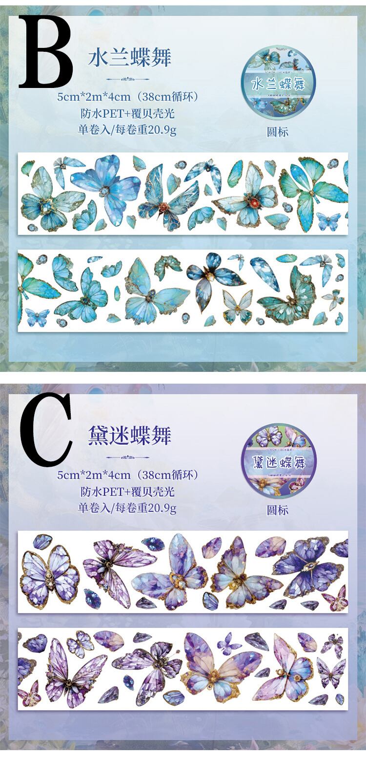 キラキラ輝く宝石のような蝶のマスキングテープです。