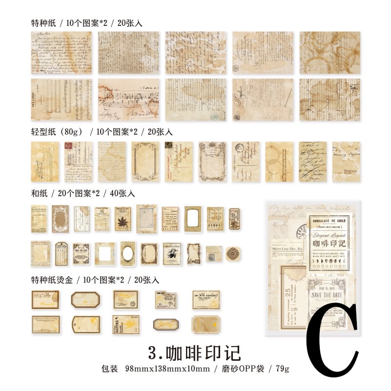 アンティーク風のペーパーとシールがたっぷり100枚入ったセットです。