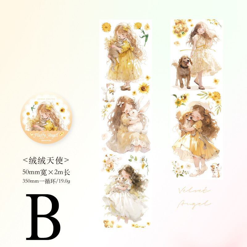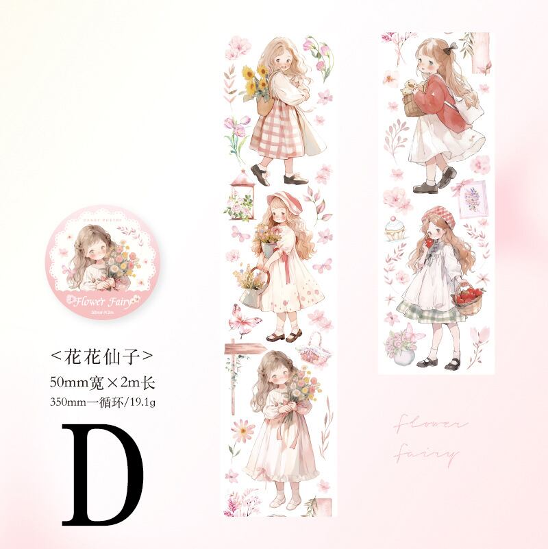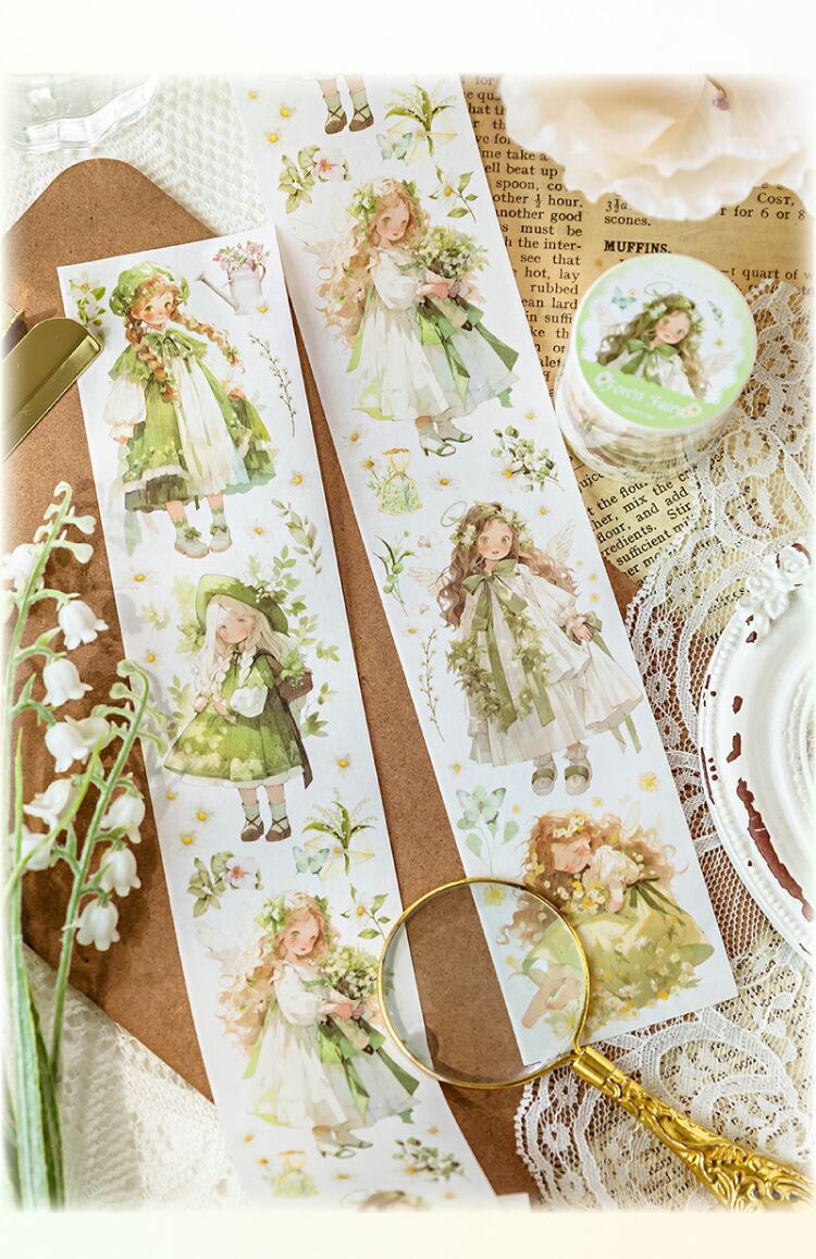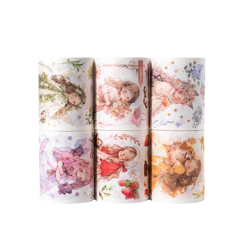 柔らかい色合いが素敵な、とってもかわいい女の子のマスキングテープです。