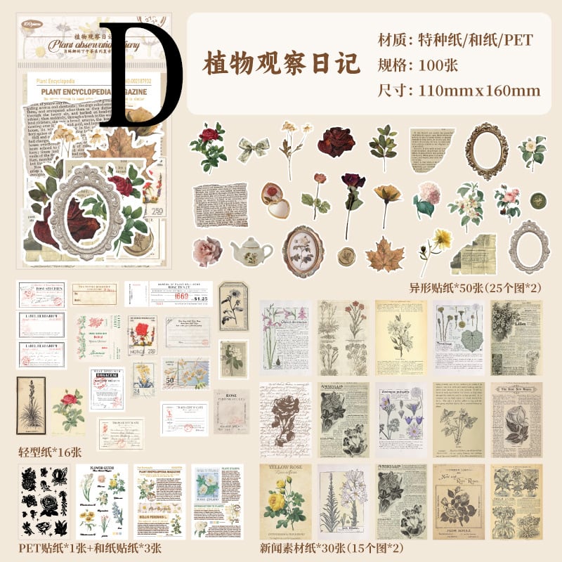 ヴィンテージ雰囲気シールとペーパーセット 100枚