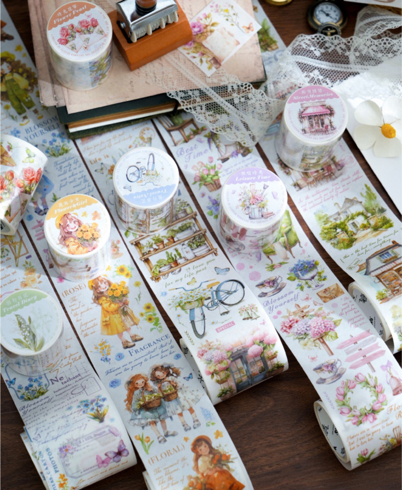 水彩風のイラストがかわいいマスキングテープです。