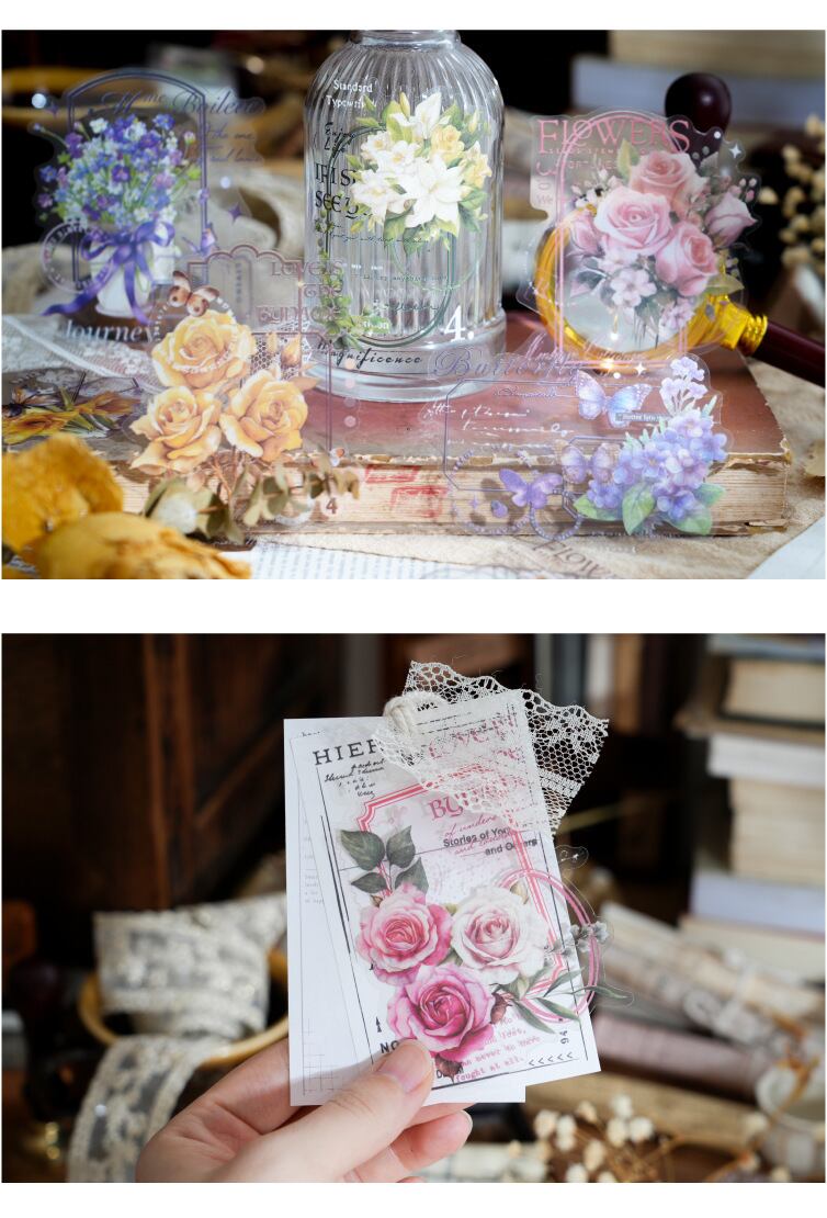 きれいなお花のコラージュ風のシールです。