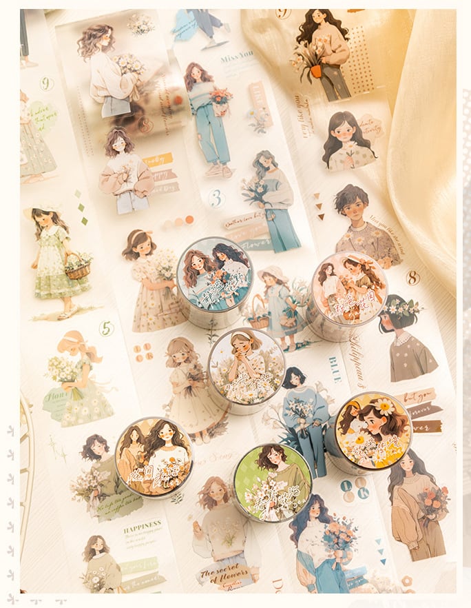 淡い色合いが素敵なかわいい少女のロールテープです。