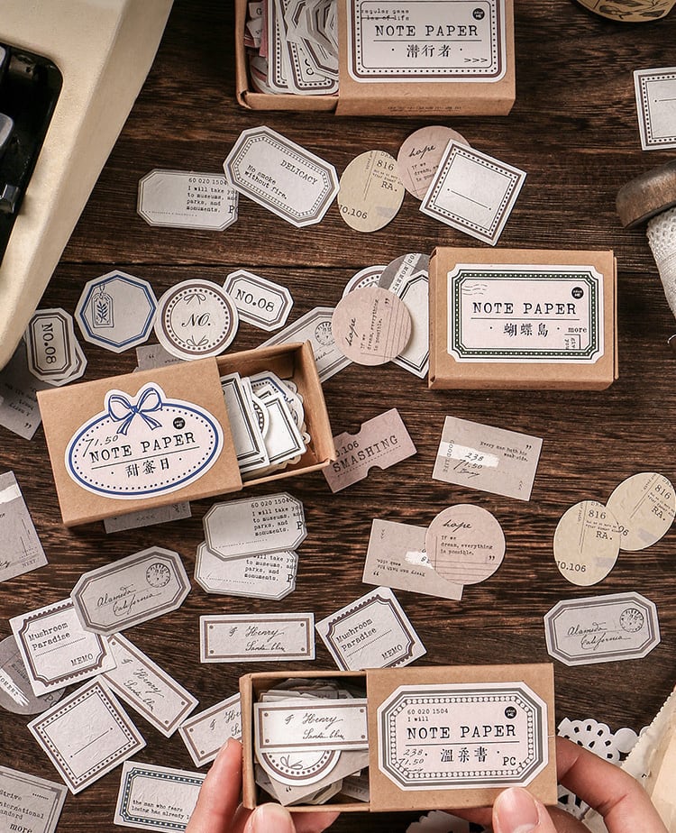 かすれた色合いとフレームのデザインがかわいい小さいペーパーです。