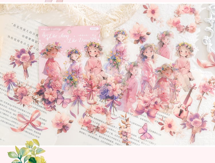 柔らかい光にあたった少女が美しいデザインのシールです。