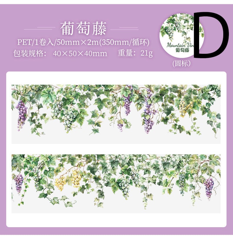 美しいお花や草がカーテンのようになっているマスキングテープです。