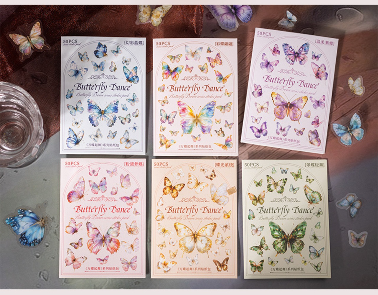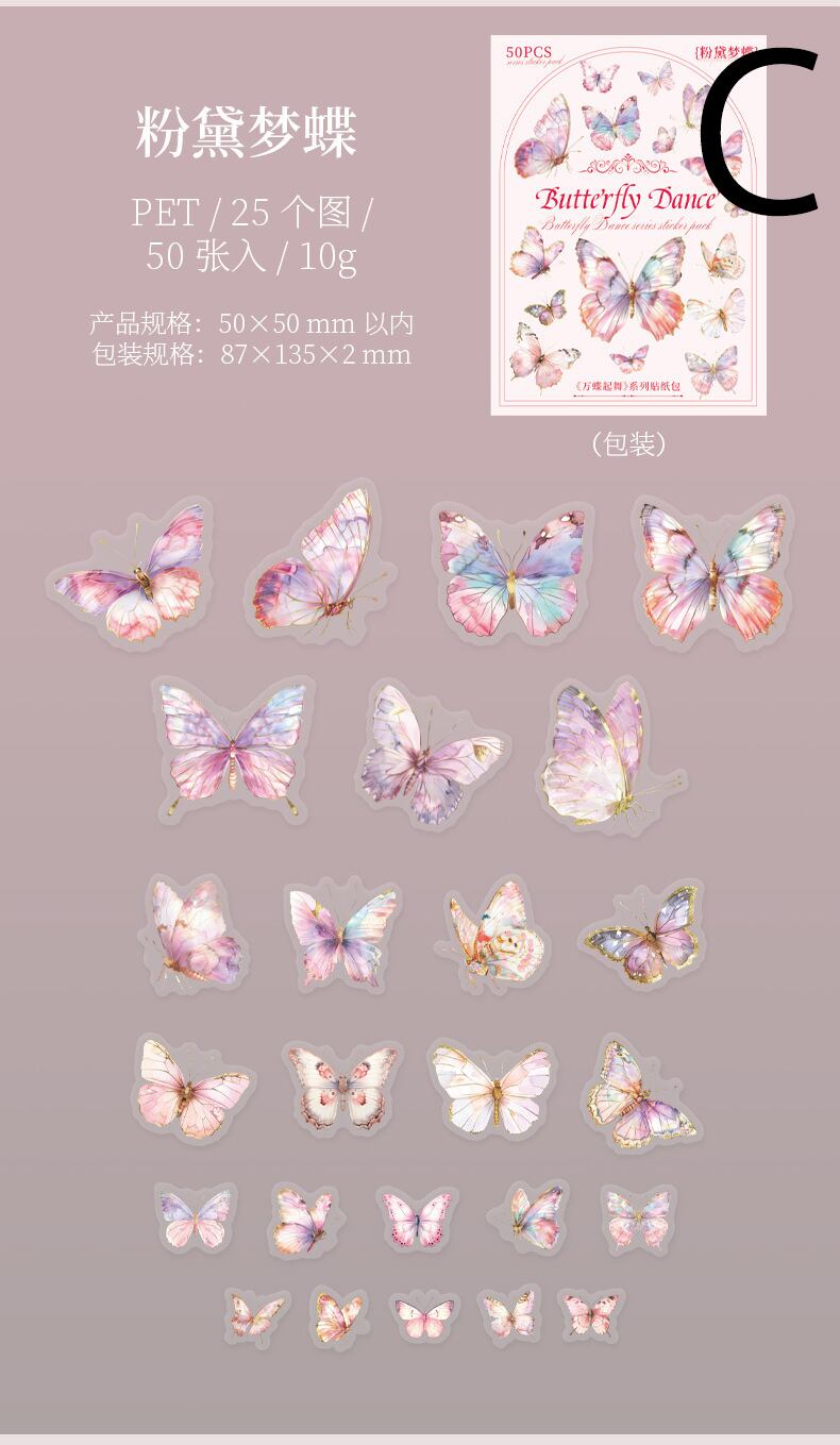 色々なサイズの美しい蝶のシールです。