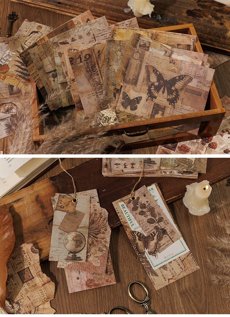 レトロなイラストとセピアな色合いが素敵なデザインのペーパーです。