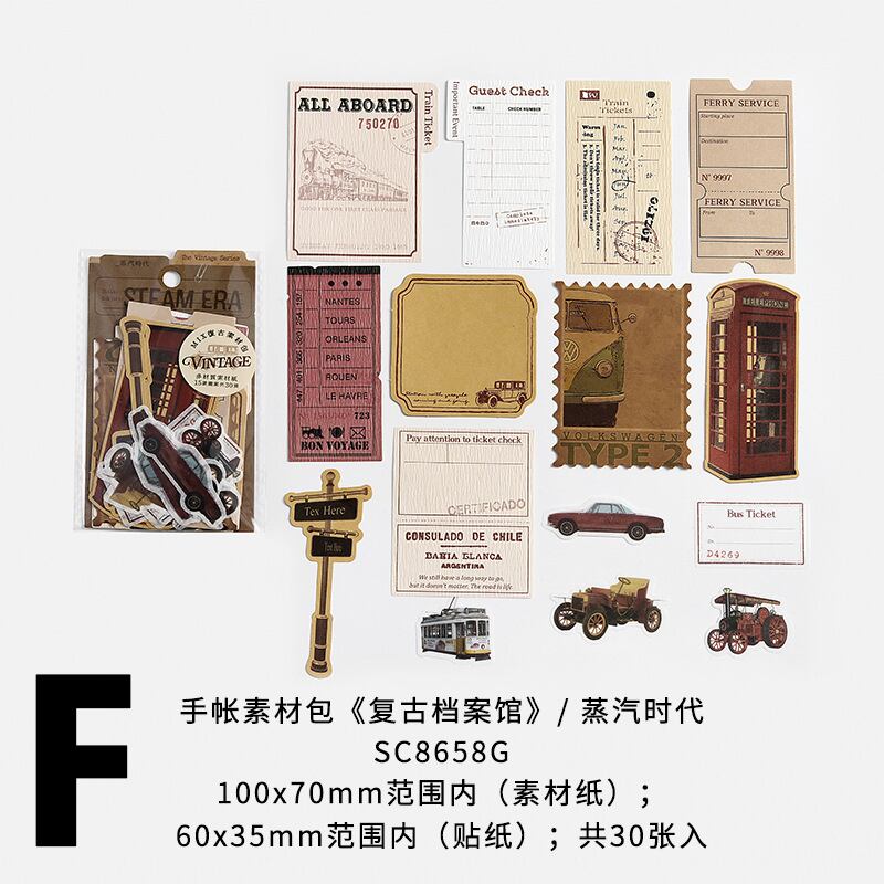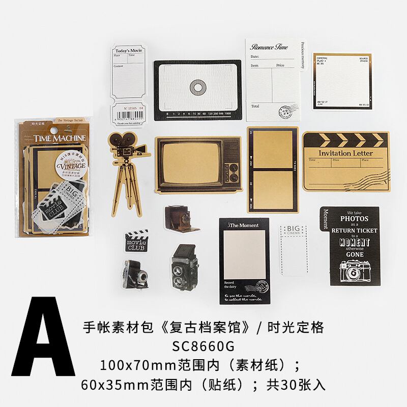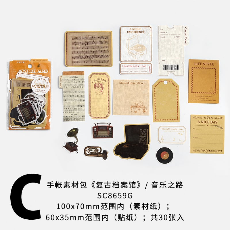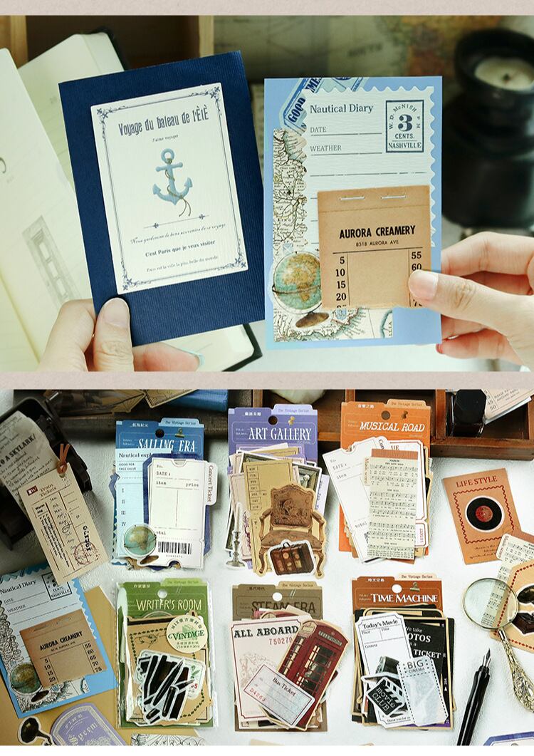 シンプルレトロな雰囲気のデザインのペーパーとシールのセットです。