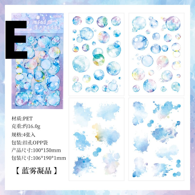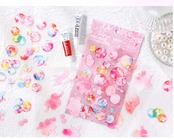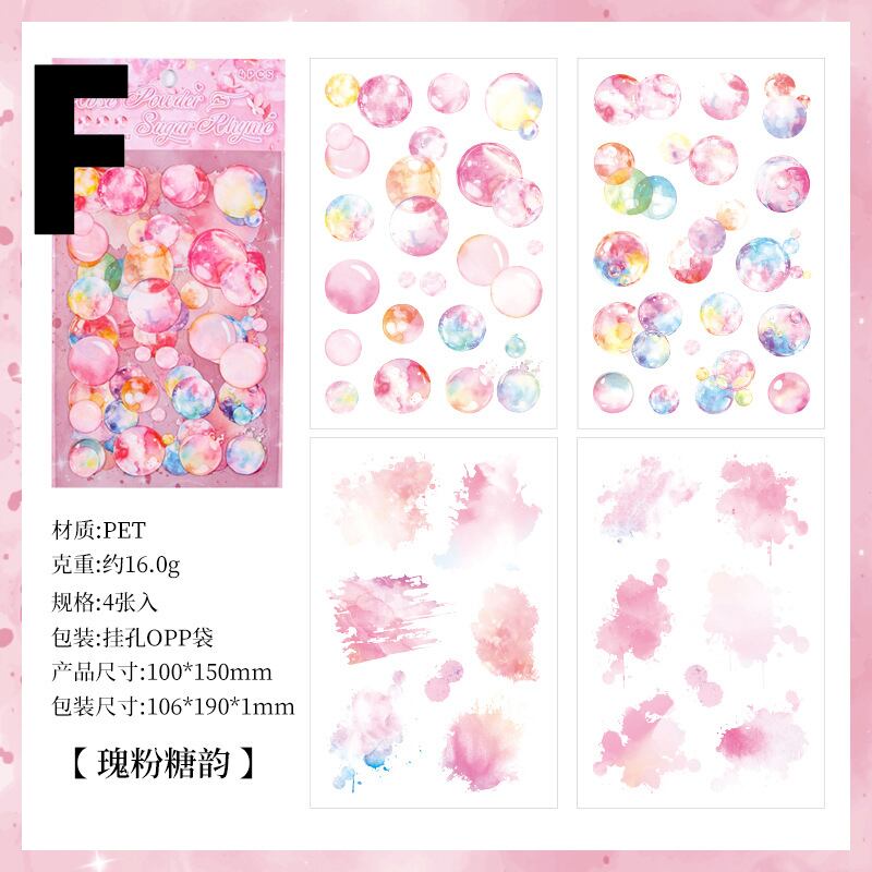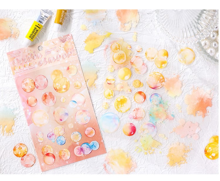 色合いが綺麗なシャボン玉と、絵具が滲んだようなデザインのシールがセットになっています。