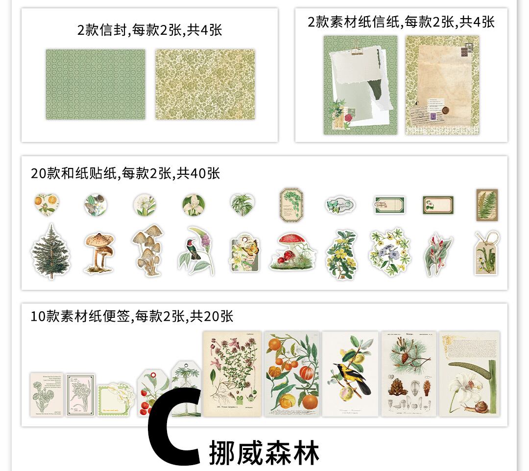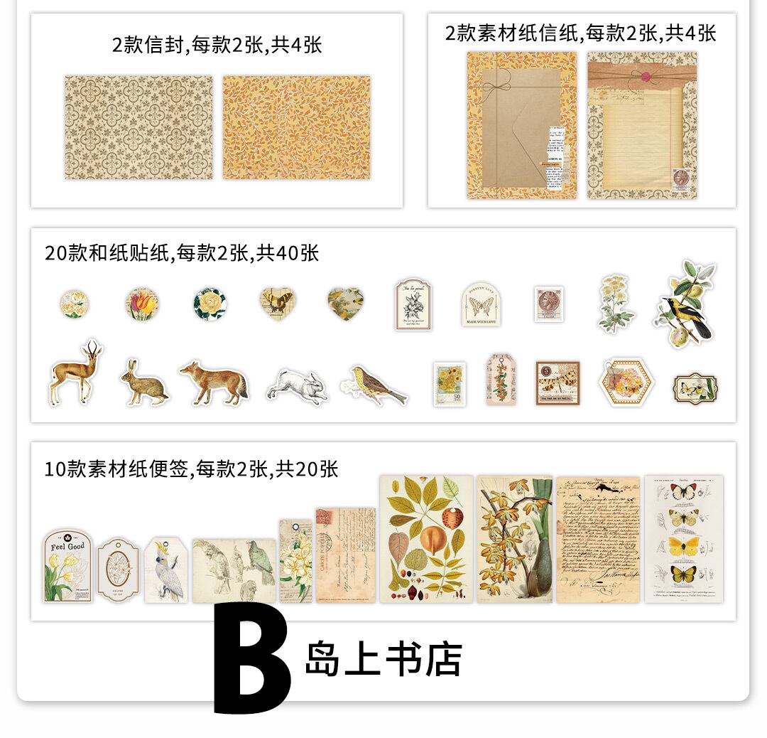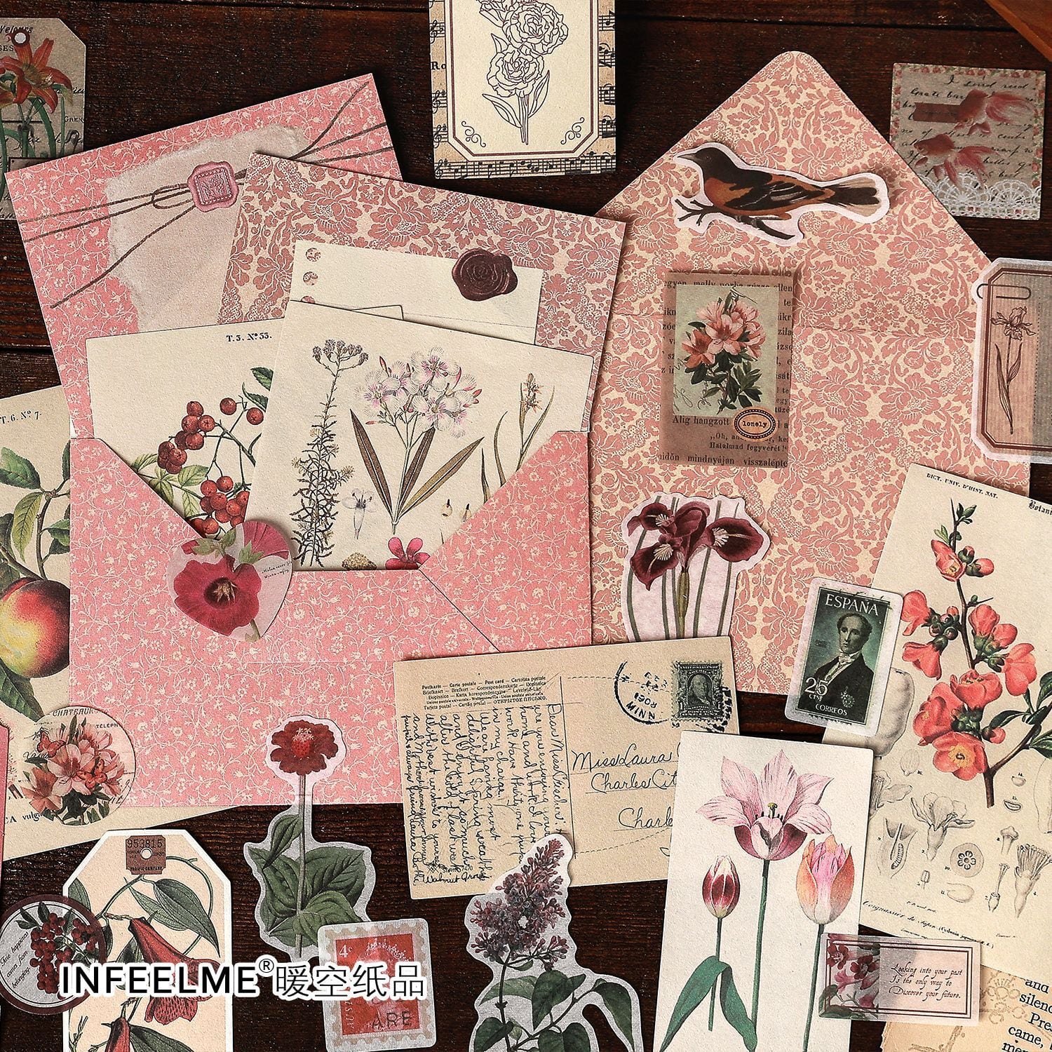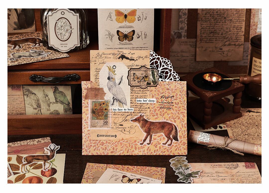 レトロな色合いとデザインがかわいいシールとペーパーのセットです。