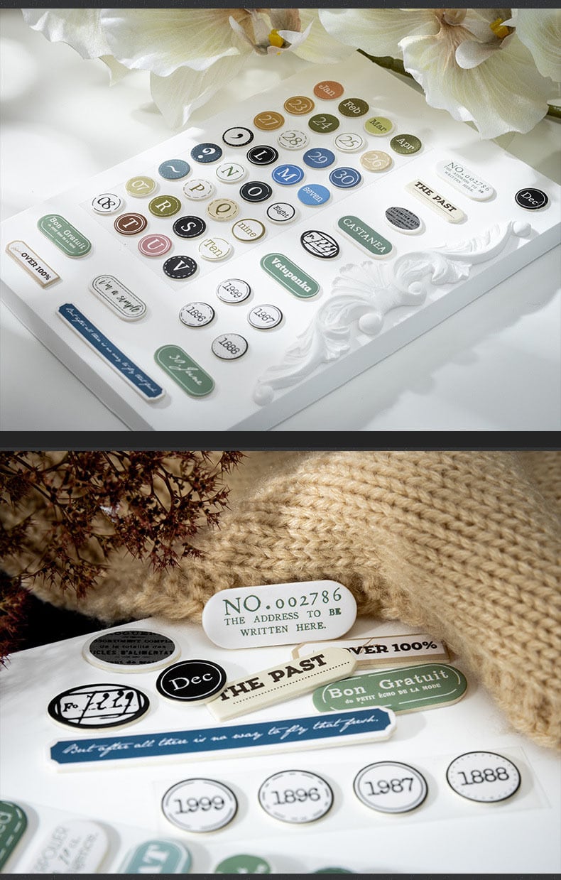 シンプルでレトロな色合いがかわいい、厚みのあるシールです。