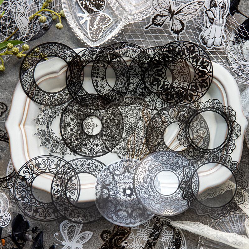 レトロなデザインやレースなどのモノクロがかっこいいシールです。