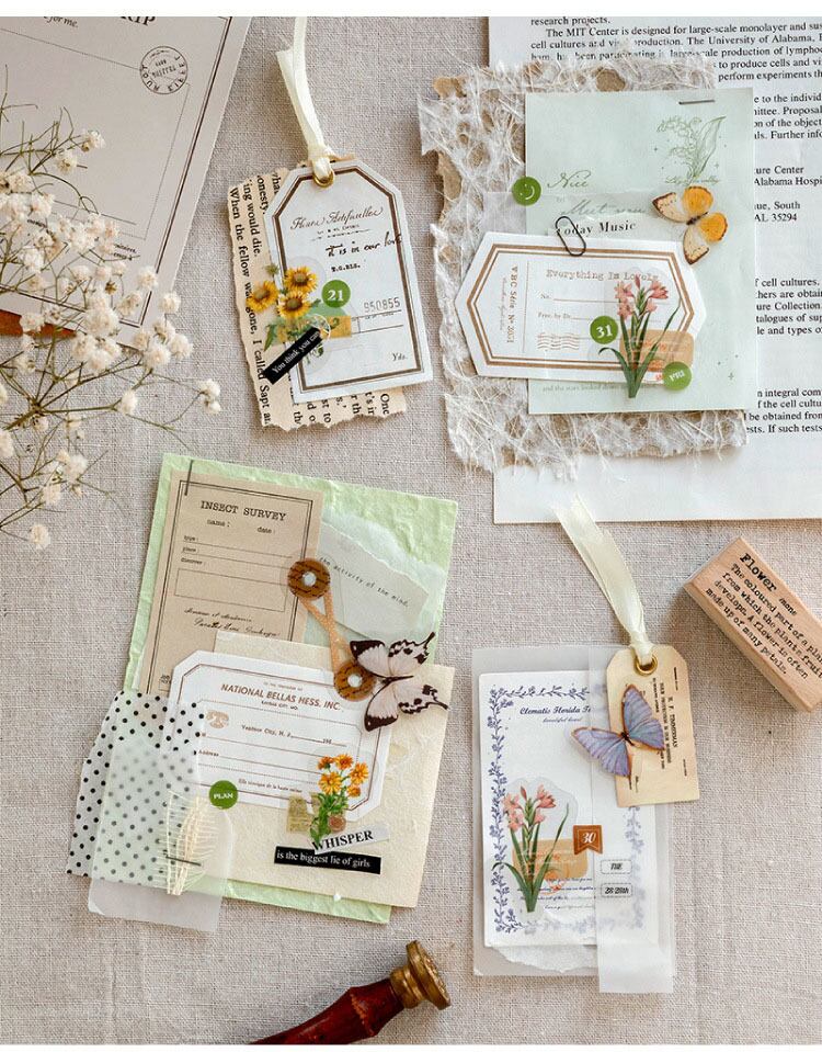 フレークシール シール ステッカー 写真 イラスト スクラップブック ジャンクジャーナル 手帳 手帳素材 素材 背景紙 紙もの 紙もの素材 コラージュペーパー おすそ分けファイル 切手型